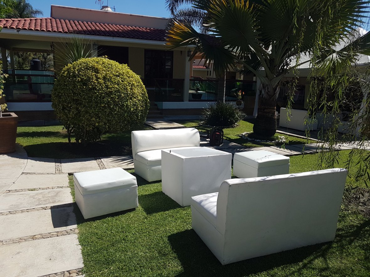 Buenas tardes , sala lounge $800 (incluye 2 sillones dobles, 2 individuales y mesa de centro, mesa cuadrada con silla tiffany y mantwleria $285